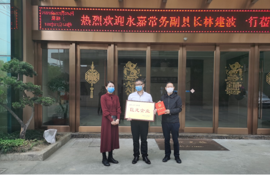 3月25日縣常務(wù)副縣長(zhǎng)林建波,為特技閥門授予“2019年度巨龍企業(yè)”牌子,為吳董頒發(fā)“2019年度巨龍企業(yè)家”榮譽(yù)證書。