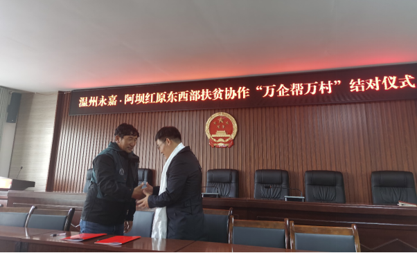 8月30日,由永嘉縣經(jīng)信局副局長(zhǎng)周望佐帶領(lǐng)我公司及其他7家永嘉企業(yè)代表赴紅原縣開(kāi)展東西部扶貧協(xié)作“萬(wàn)企幫萬(wàn)村”工作并舉行溫州永嘉——阿壩紅原東西部扶貧協(xié)作“萬(wàn)企幫萬(wàn)村”結(jié)對(duì)儀式。